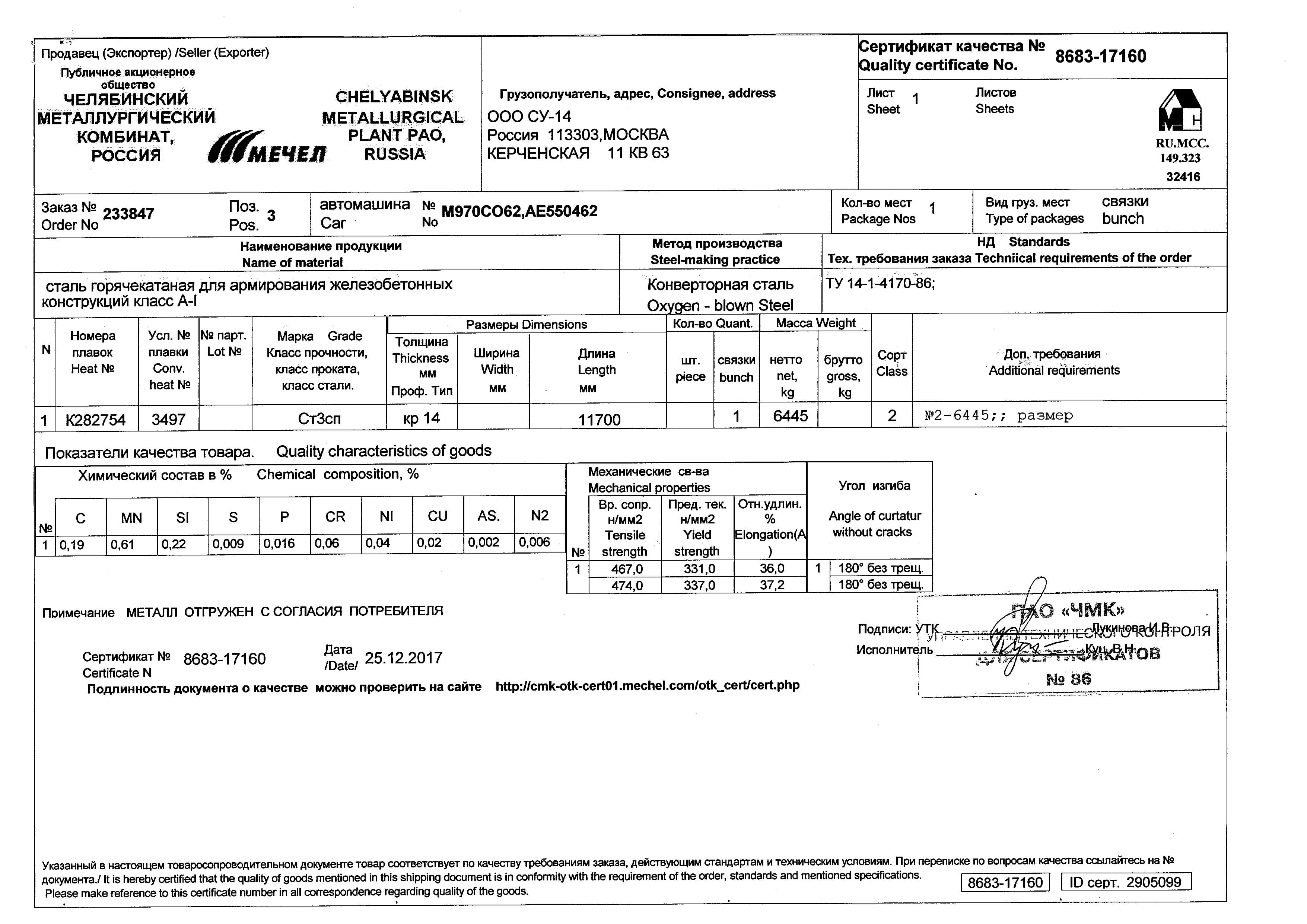 Наша металлобаза занимается комплексными поставками строительных материалов от ведущих производителей в отрасли стройматериалов. Марка у данной арматуры - А1, а диаметр- 14 мм. Выпускается с использованием следующих марок стали: А240. Цены на всю нашу продукцию указаны из расчета за 1 тонну. Возможна резка под необходимый Вам размер.